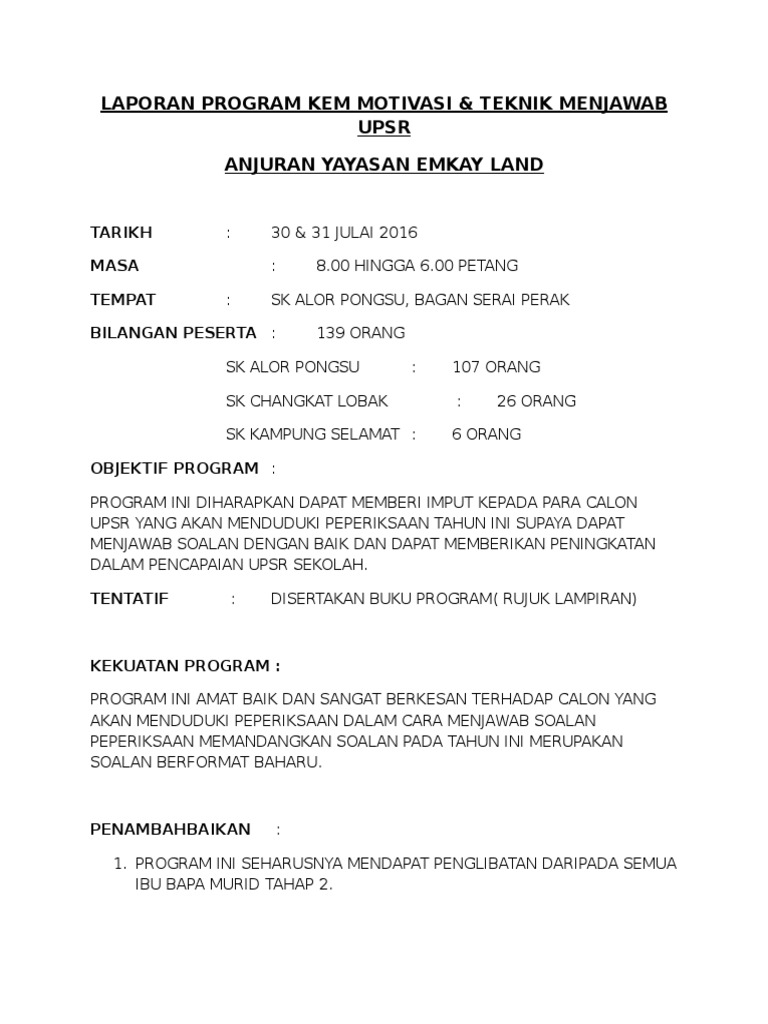 Contoh Kertas Kerja Program Motivasi Pdf
