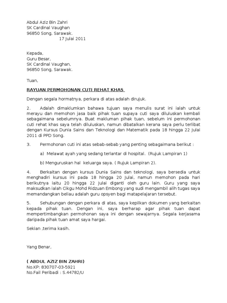 Surat Rayuan Cuti Crk 21 Dan 22 Julai Pdf